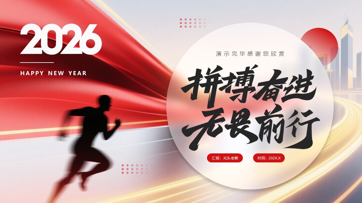 拼搏奋进无畏前行年终汇报总结通用PPT模板 免责声明 该内容是由网友【mail_55293571】于2026-02-13上传分享到光头老蔡资源分享平台,作品版权和著作权属原作者所有,如果因此侵犯了您的相关权益,请直接联系页面右侧的在线客服及时删除相关内容。
