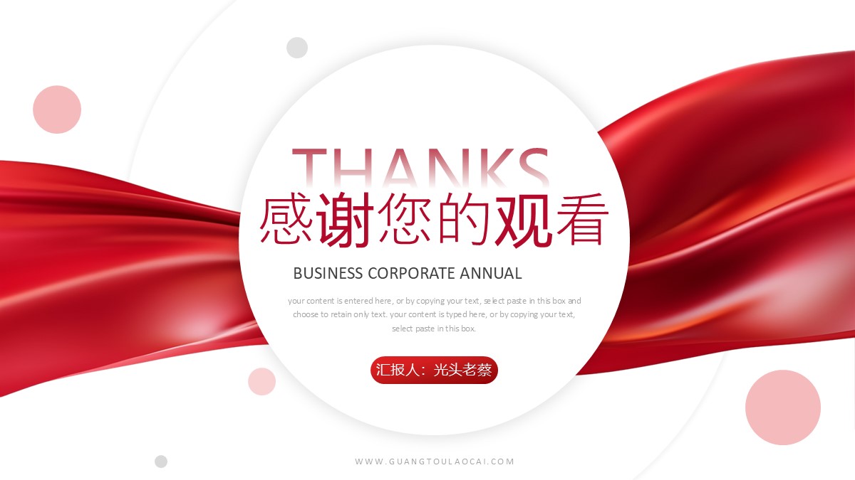年终述职年终总结报告通用PPT模板 免责声明 该内容是由网友【mail_93663533】于2026-02-17上传分享到光头老蔡资源分享平台,作品版权和著作权属原作者所有,如果因此侵犯了您的相关权益,请直接联系页面右侧的在线客服及时删除相关内容。
