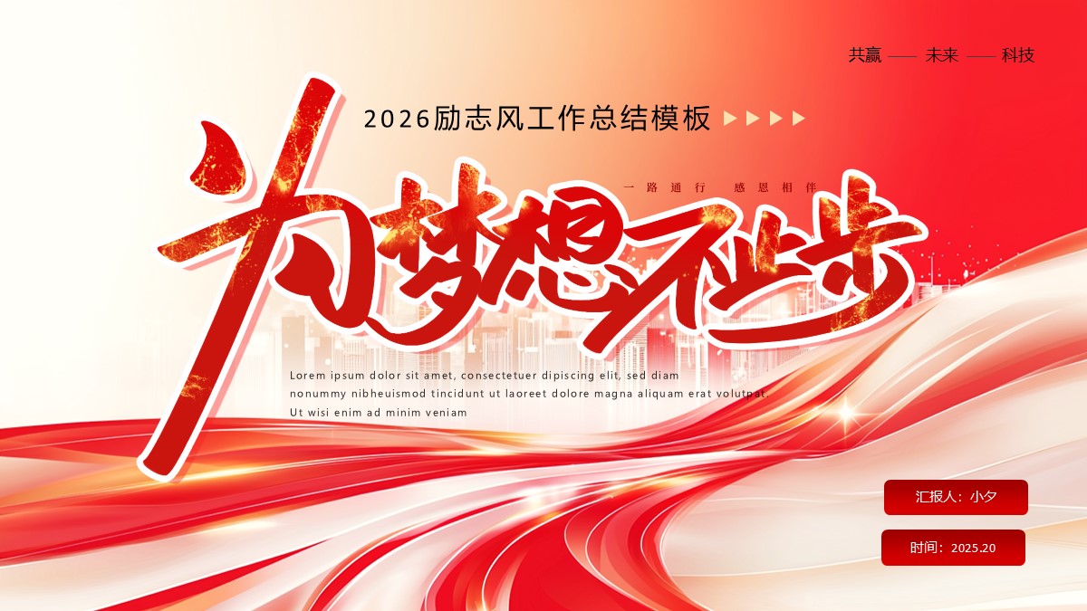为梦想不止步励志风工作总结PPT模板 免责声明 该内容是由网友【lijiabin】于2026-02-04上传分享到光头老蔡资源分享平台,作品版权和著作权属原作者所有,如果因此侵犯了您的相关权益,请直接联系页面右侧的在线客服及时删除相关内容。