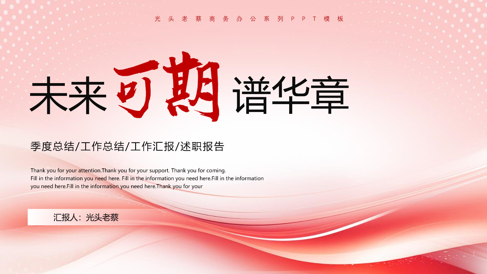 未来可期谱华章季度总结工作总结工作汇报述职报告PPT模板 免责声明 该内容是由网友【mail_17233174】于2026-02-05上传分享到光头老蔡资源分享平台,作品版权和著作权属原作者所有,如果因此侵犯了您的相关权益,请直接联系页面右侧的在线客服及时删除相关内容。