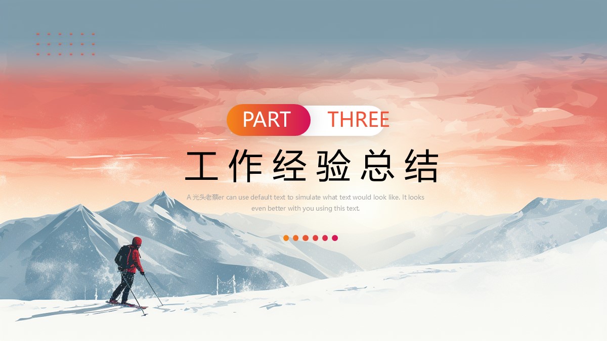 《越尽千山不负勇往》励志风工作总结PPT模板 免责声明 该内容是由网友【mail_89441186】于2026-02-05上传分享到光头老蔡资源分享平台,作品版权和著作权属原作者所有,如果因此侵犯了您的相关权益,请直接联系页面右侧的在线客服及时删除相关内容。