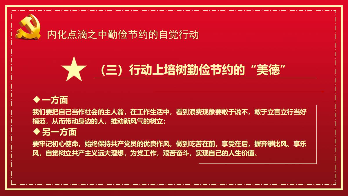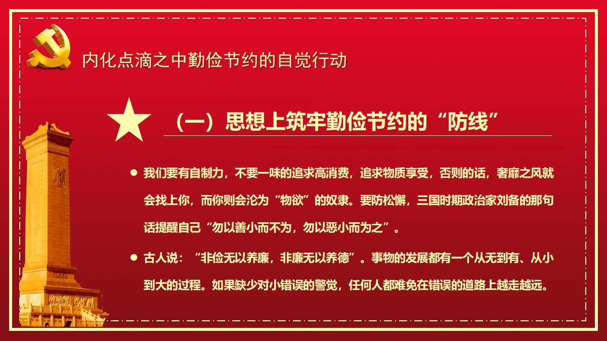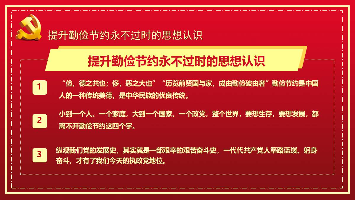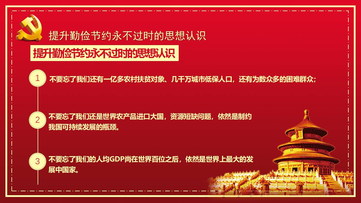 红金配色党政风发扬艰苦奋斗厉行勤俭节约PPT模板下载 免责声明 该内容是由网友【mail_40316515】于2026-02-08上传分享到光头老蔡资源分享平台,作品版权和著作权属原作者所有,如果因此侵犯了您的相关权益,请直接联系页面右侧的在线客服及时删除相关内容。