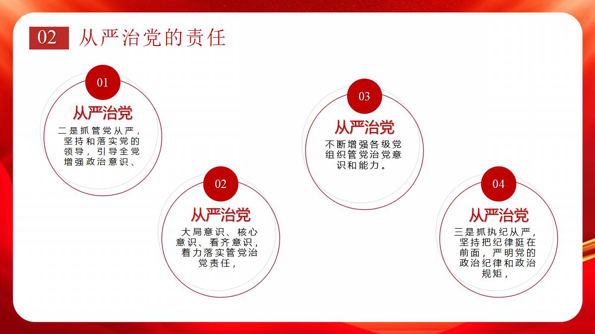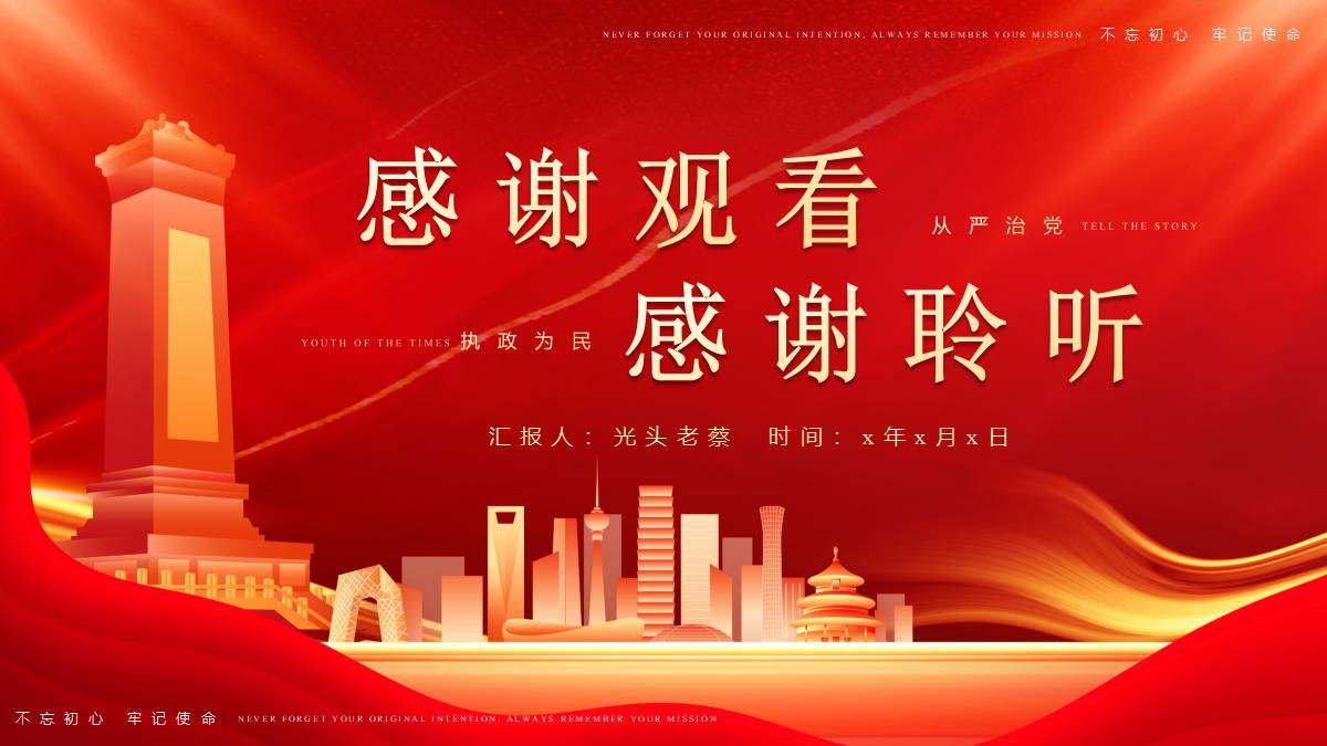 红色城市剪影背景的坚持从严治党坚守责任担当党课教育PPT模板 免责声明 该内容是由网友【mail_35135920】于2026-02-08上传分享到光头老蔡资源分享平台,作品版权和著作权属原作者所有,如果因此侵犯了您的相关权益,请直接联系页面右侧的在线客服及时删除相关内容。