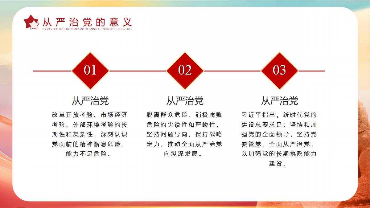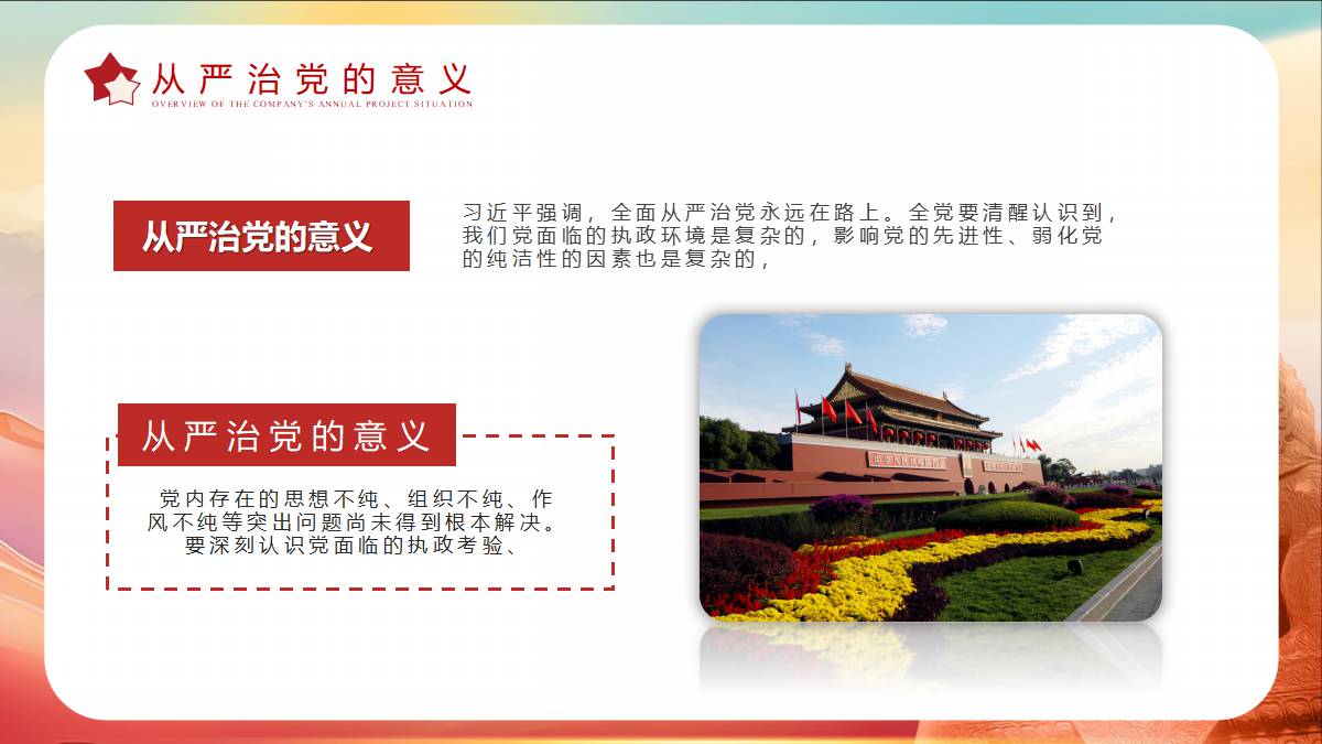 红色城市剪影背景的大气党政风加强纪律建设推动从严治党党课教育PPT模板 免责声明 该内容是由网友【mail_29706109】于2026-02-08上传分享到光头老蔡资源分享平台,作品版权和著作权属原作者所有,如果因此侵犯了您的相关权益,请直接联系页面右侧的在线客服及时删除相关内容。