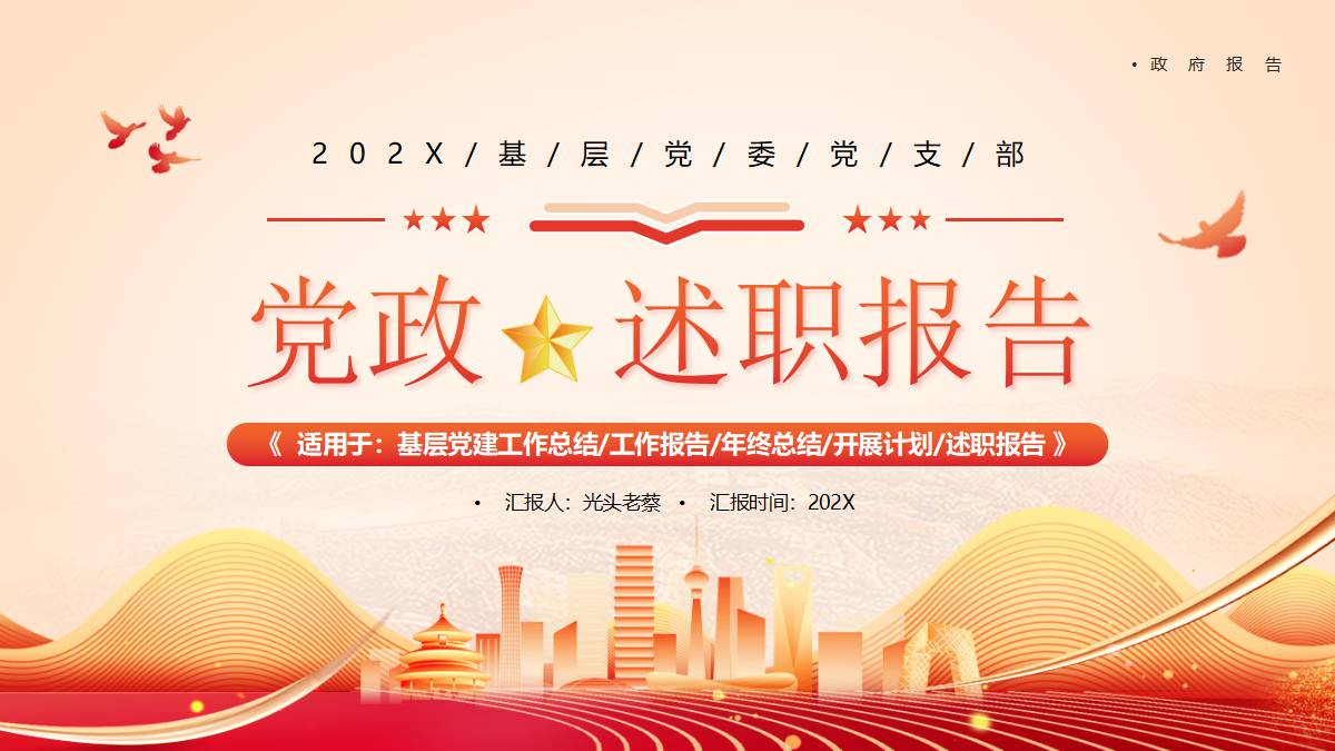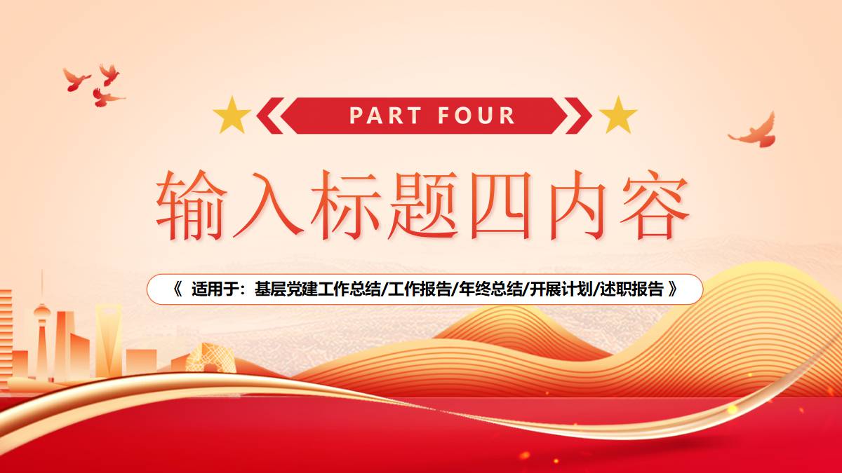 红色城市剪影背景的党政述职报告PPT模板 免责声明 该内容是由网友【mail_86073370】于2026-02-08上传分享到光头老蔡资源分享平台,作品版权和著作权属原作者所有,如果因此侵犯了您的相关权益,请直接联系页面右侧的在线客服及时删除相关内容。