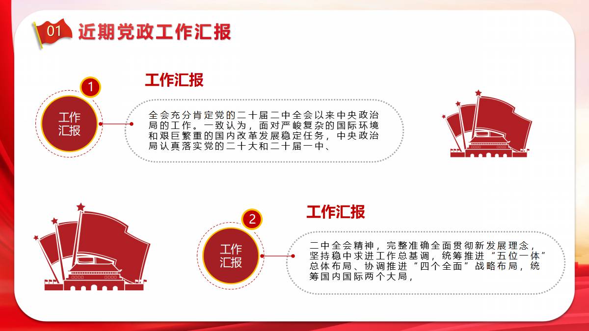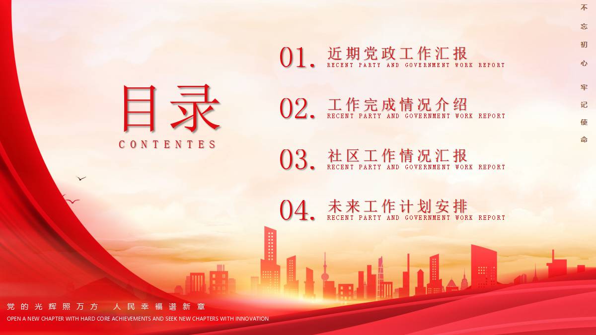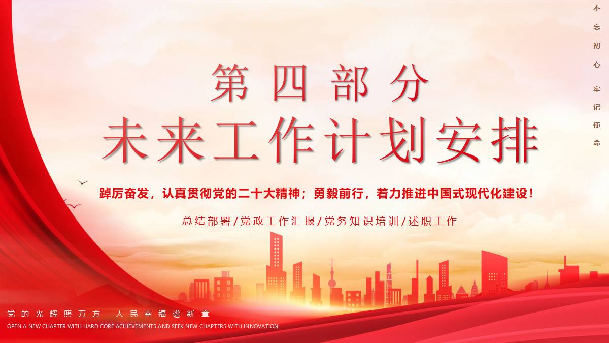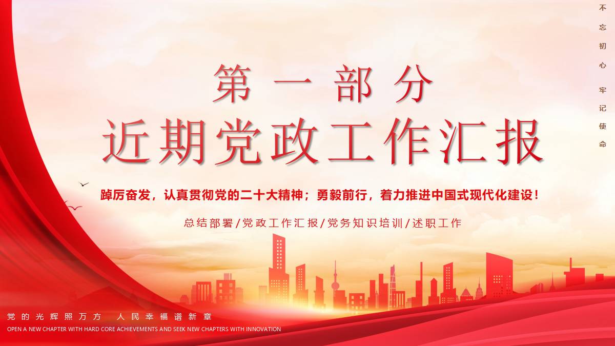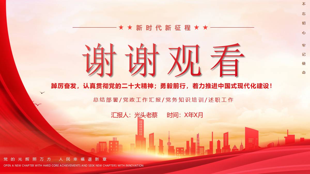 红色大气城市剪影背景的年度党政工作汇报PPT模板 免责声明 该内容是由网友【mail_23152691】于2026-02-08上传分享到光头老蔡资源分享平台,作品版权和著作权属原作者所有,如果因此侵犯了您的相关权益,请直接联系页面右侧的在线客服及时删除相关内容。