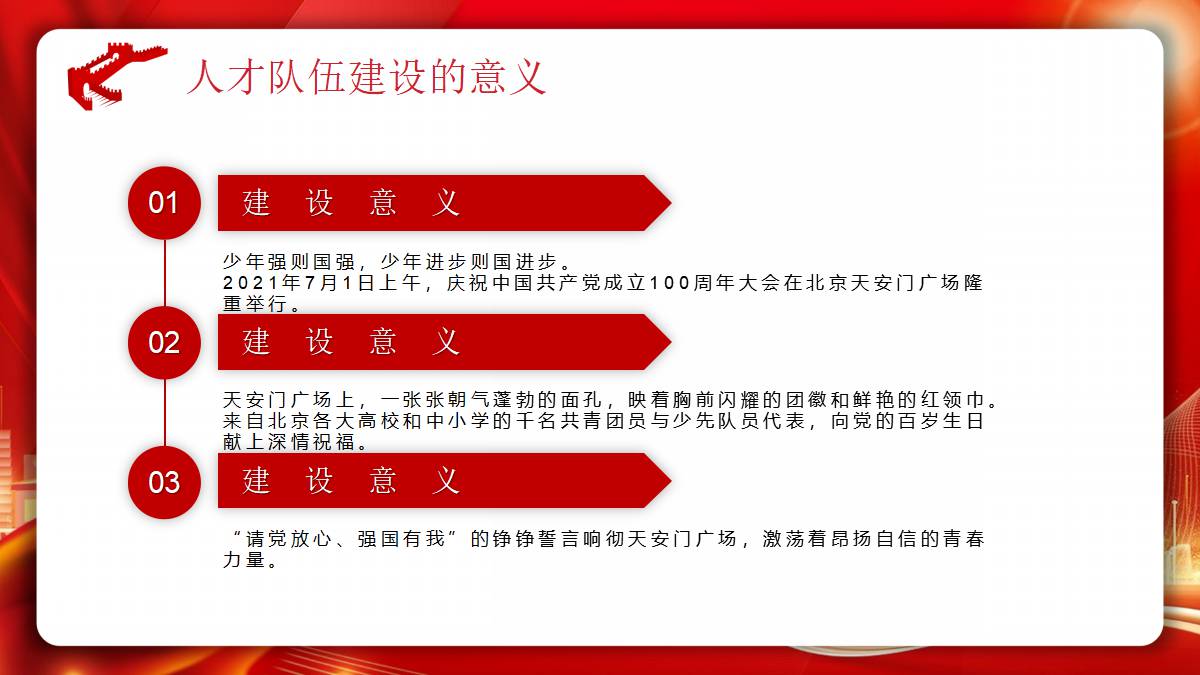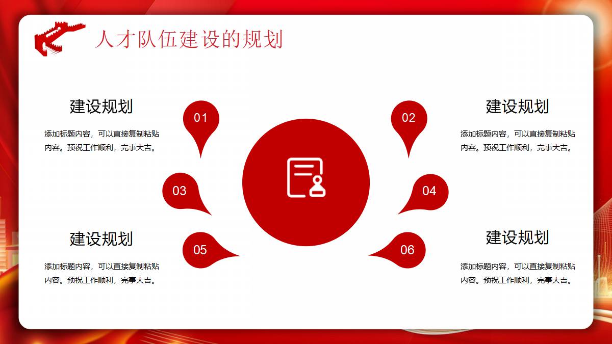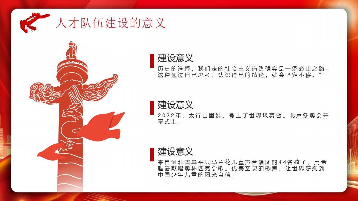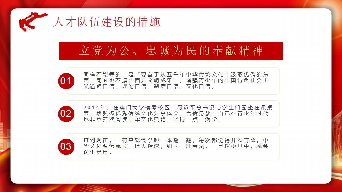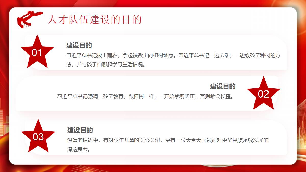 红色党政风牢记使命加强人才队伍建设党课教育PPT模板 免责声明 该内容是由网友【moses_ww】于2026-02-08上传分享到光头老蔡资源分享平台,作品版权和著作权属原作者所有,如果因此侵犯了您的相关权益,请直接联系页面右侧的在线客服及时删除相关内容。