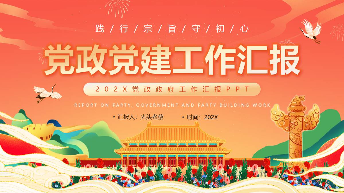 红色国潮风天安门背景的党政党建工作汇报PPT模板 免责声明 该内容是由网友【mail_90878012】于2026-02-08上传分享到光头老蔡资源分享平台,作品版权和著作权属原作者所有,如果因此侵犯了您的相关权益,请直接联系页面右侧的在线客服及时删除相关内容。