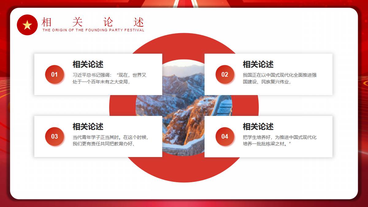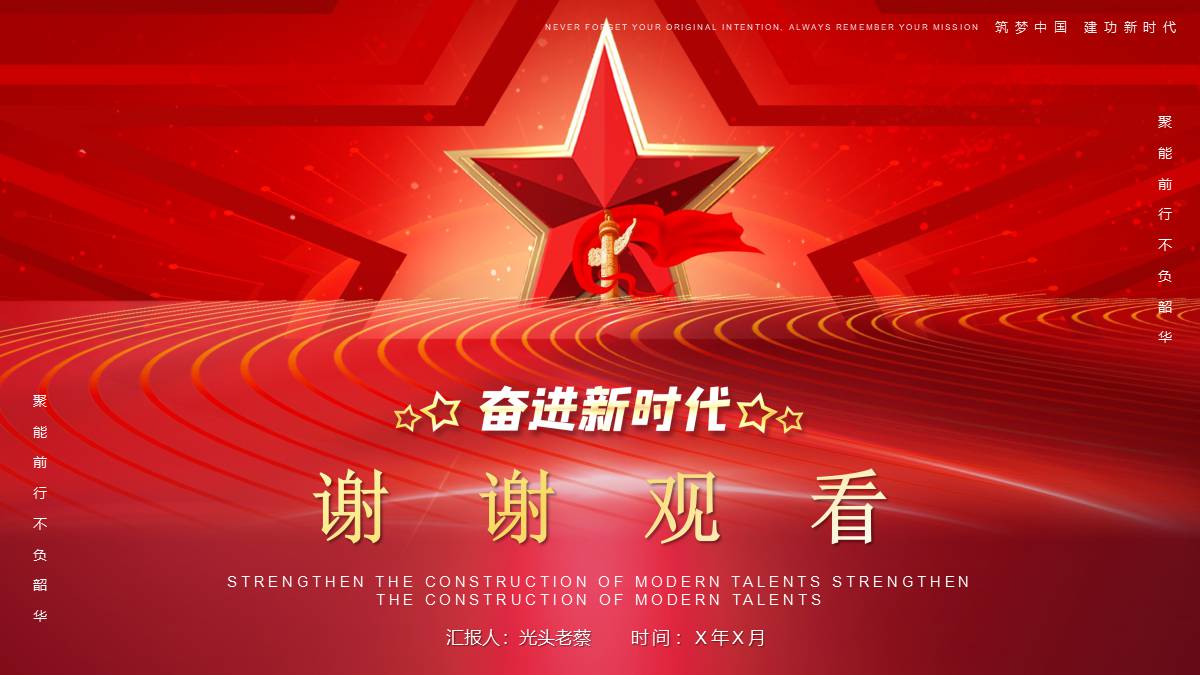 红色五角星背景的加强现代化人才建设党课教育PPT模板 免责声明 该内容是由网友【mail_48377825】于2026-02-08上传分享到光头老蔡资源分享平台,作品版权和著作权属原作者所有,如果因此侵犯了您的相关权益,请直接联系页面右侧的在线客服及时删除相关内容。
